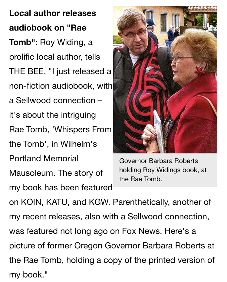 Read the front-page Oregonian article by Pulitzer prizewinner Tom Hallman, Jr. on the tomb here.
