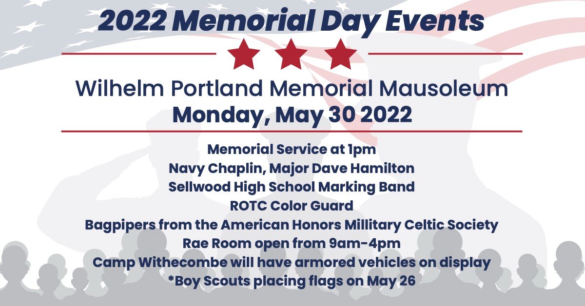 Local Memorial Day news coverage features Portland’s historic Wilhelm’s Portland Memorial mausoleum and the fascinating ‘Rae Room’ tomb there. Here’s some helpful information, if you’re planning to attend: