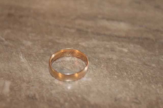 Elizabeth Rae rests next to her husband, George Rae in Portland’s magnificent ‘Rae Room’ tomb. Elizabeth’s maiden name was Maxwell and before her marriage to George Rae, Elizabeth’s prior married name was Miller. This ring was gifted from Elizabeth to her sister Celia Dubbs and bears the inscription ‘E.M to C.D.’ This precious ring remains in the hands of Elizabeth Rae’s family.