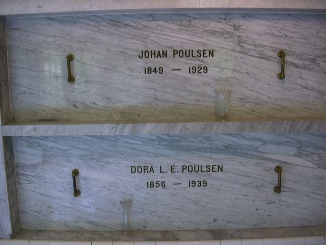 To grasp the caliber of Rae and his co-founders, it’s helpful to comprehend the significance of Portland’s Inman-Poulsen Lumber Company, an astonishingly successful business. In 1890, Rae co-founded that firm with three other men. As a team, the four co-founders accomplished much. They employed many workers and broke a world lumber production record in the process. For all their effort, each was amply rewarded with significant wealth. Along with Rae, three of the four co-founders are interred at Wilhelm’s Portland Memorial. This includes Robert Inman & Johan Poulsen, both located close to each other in the structure’s older, southern subterranian section.